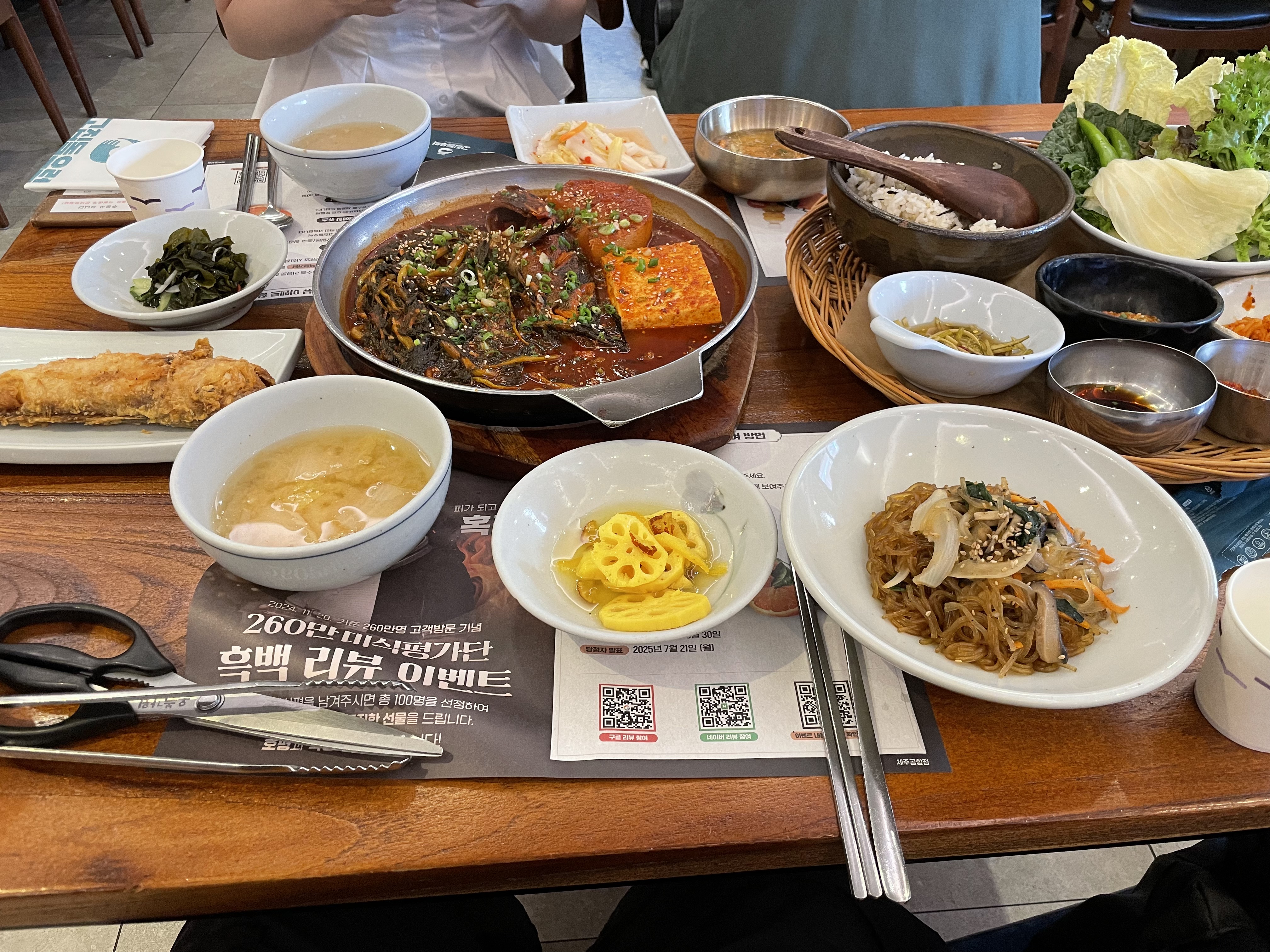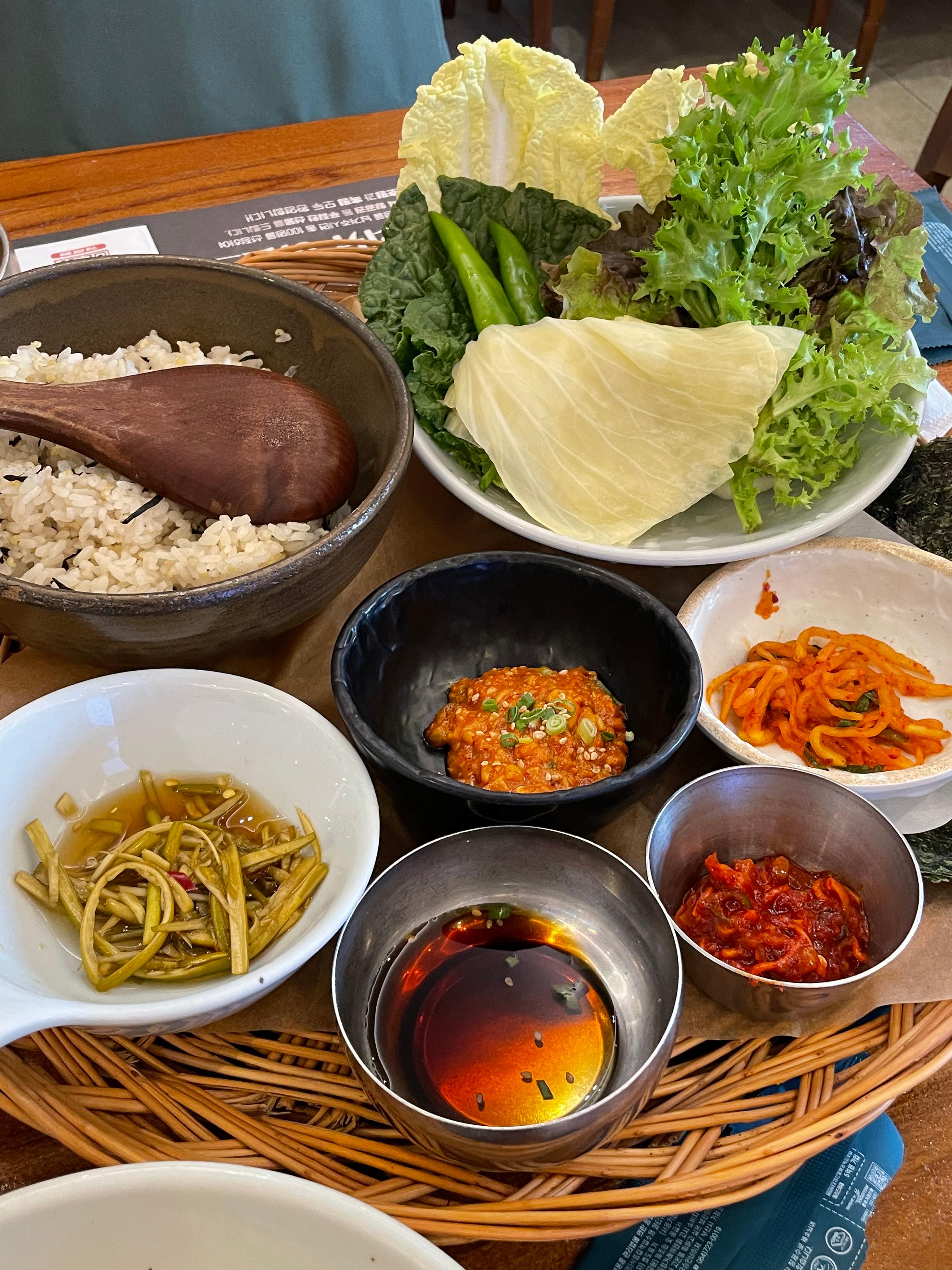 정확히 뭔진 모르겠지만 저 사진 왼쪽에 초록색 나물을 정말 맛있게 먹었어요.