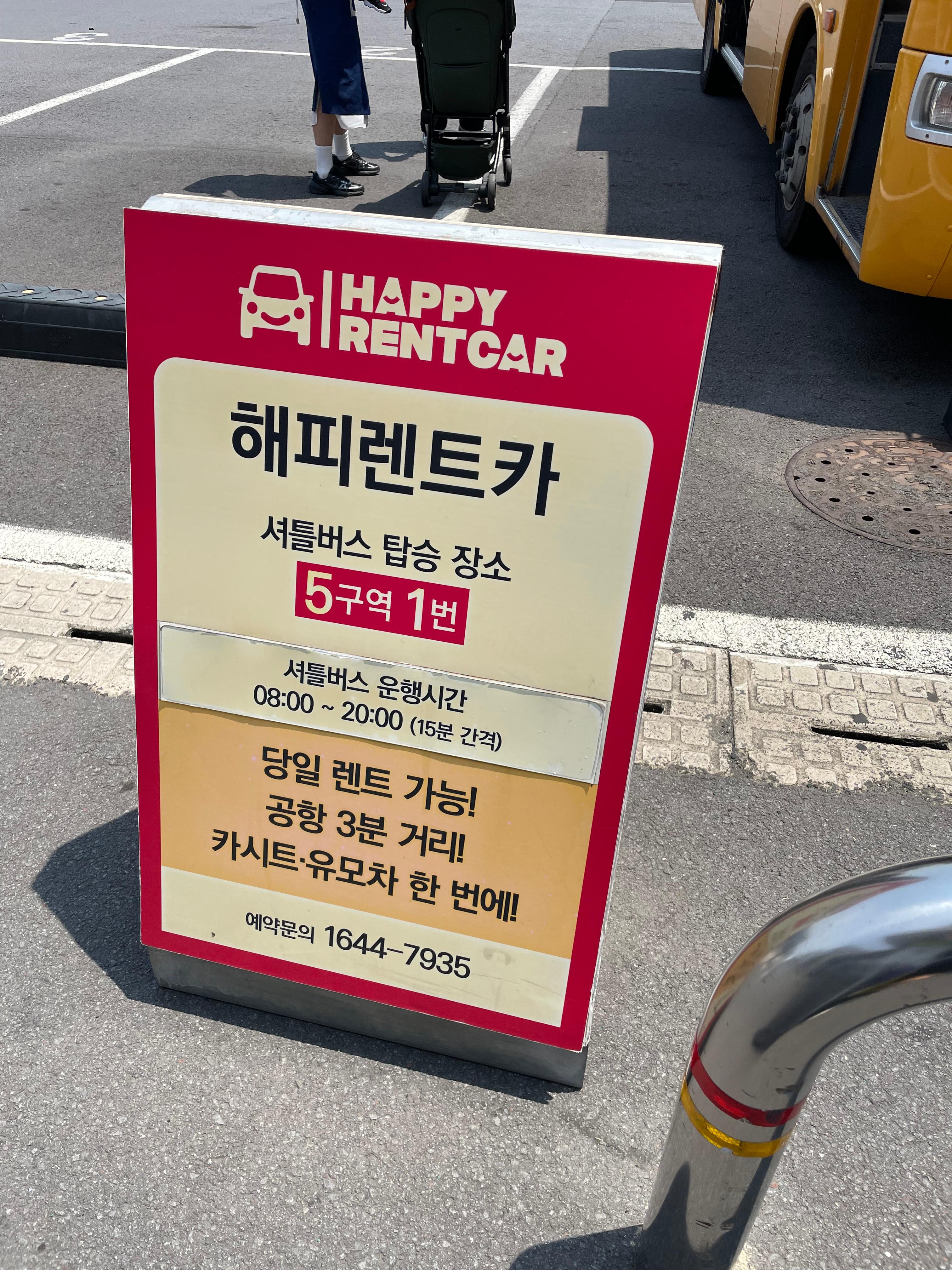 셔틀버스를 타고 3분 정도 이동하면 해피렌트카 차량 인수 장소로 이동이 가능합니다.