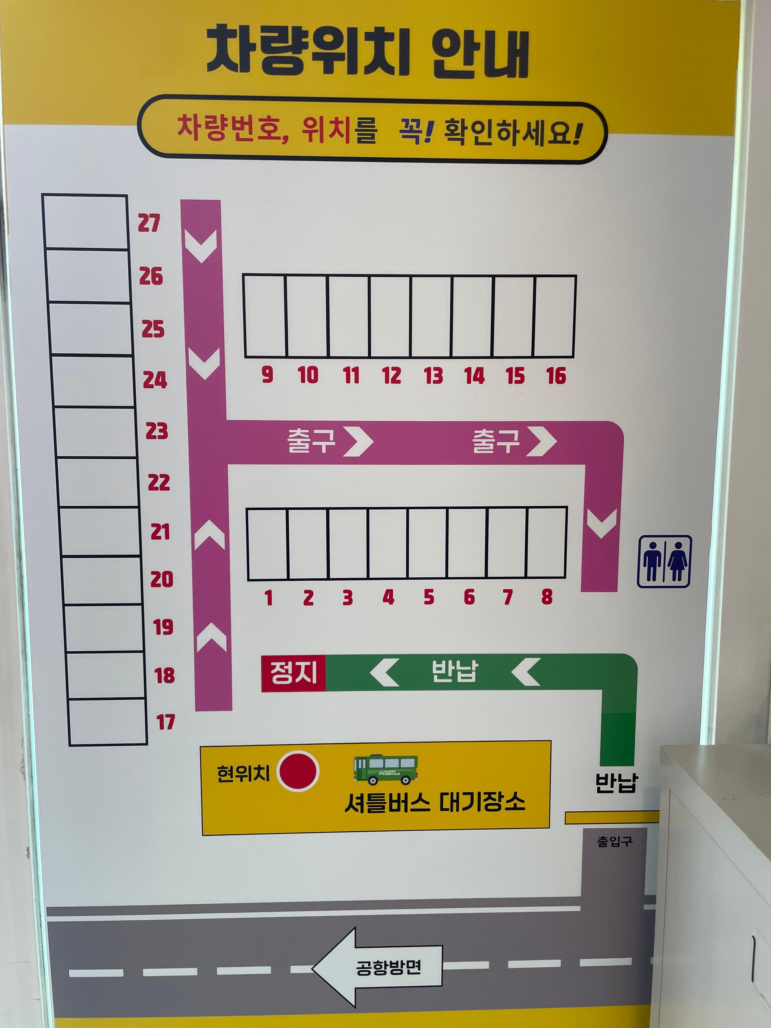 인수차량이 몇번 칸에 주차되어 있는지 확인할 수 있게 야외 주차장 약도도 붙어있습니다.