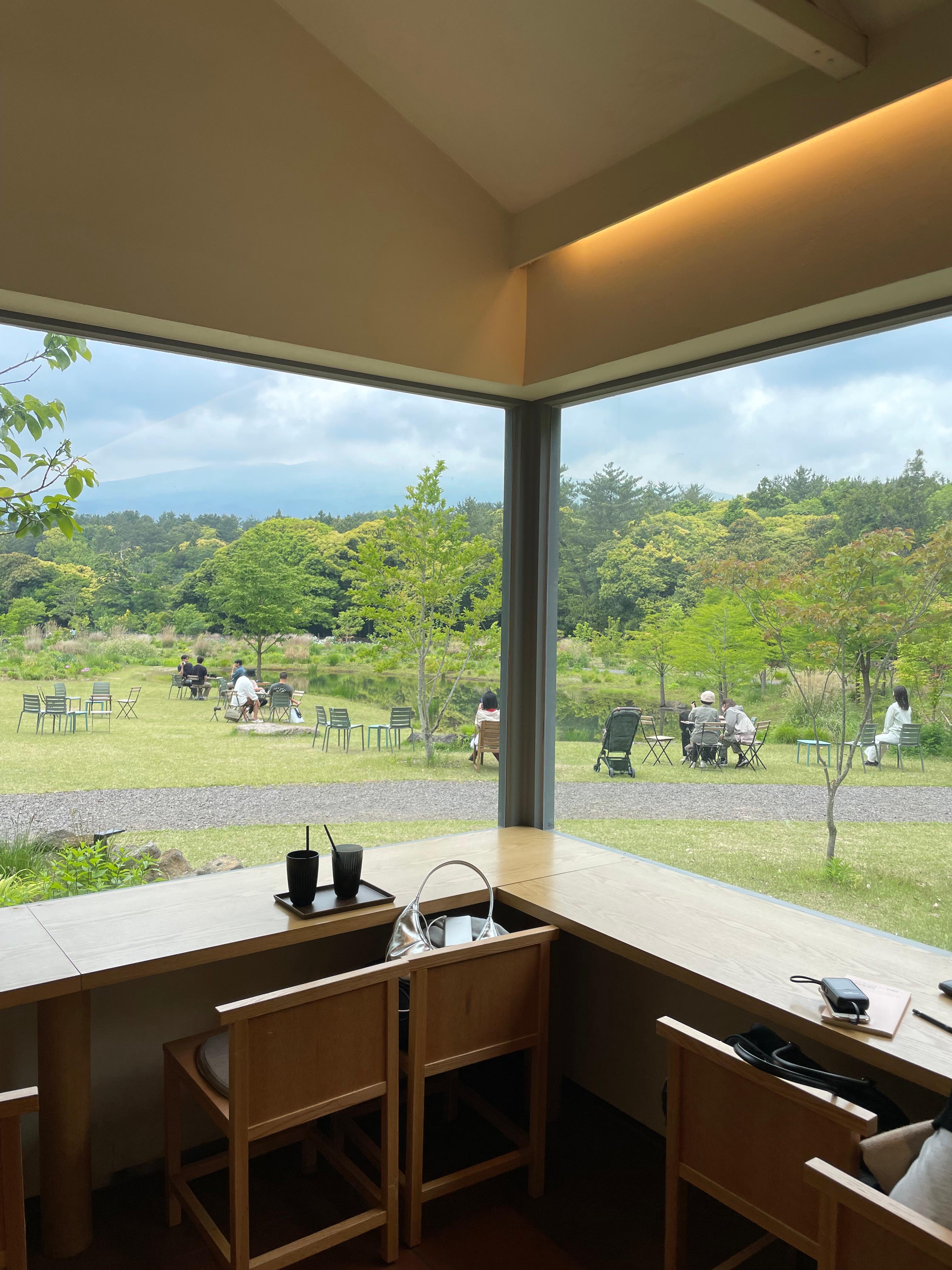 카페 건물 내부에서 야외 정원을 바라보는 모습도 멋지군요.