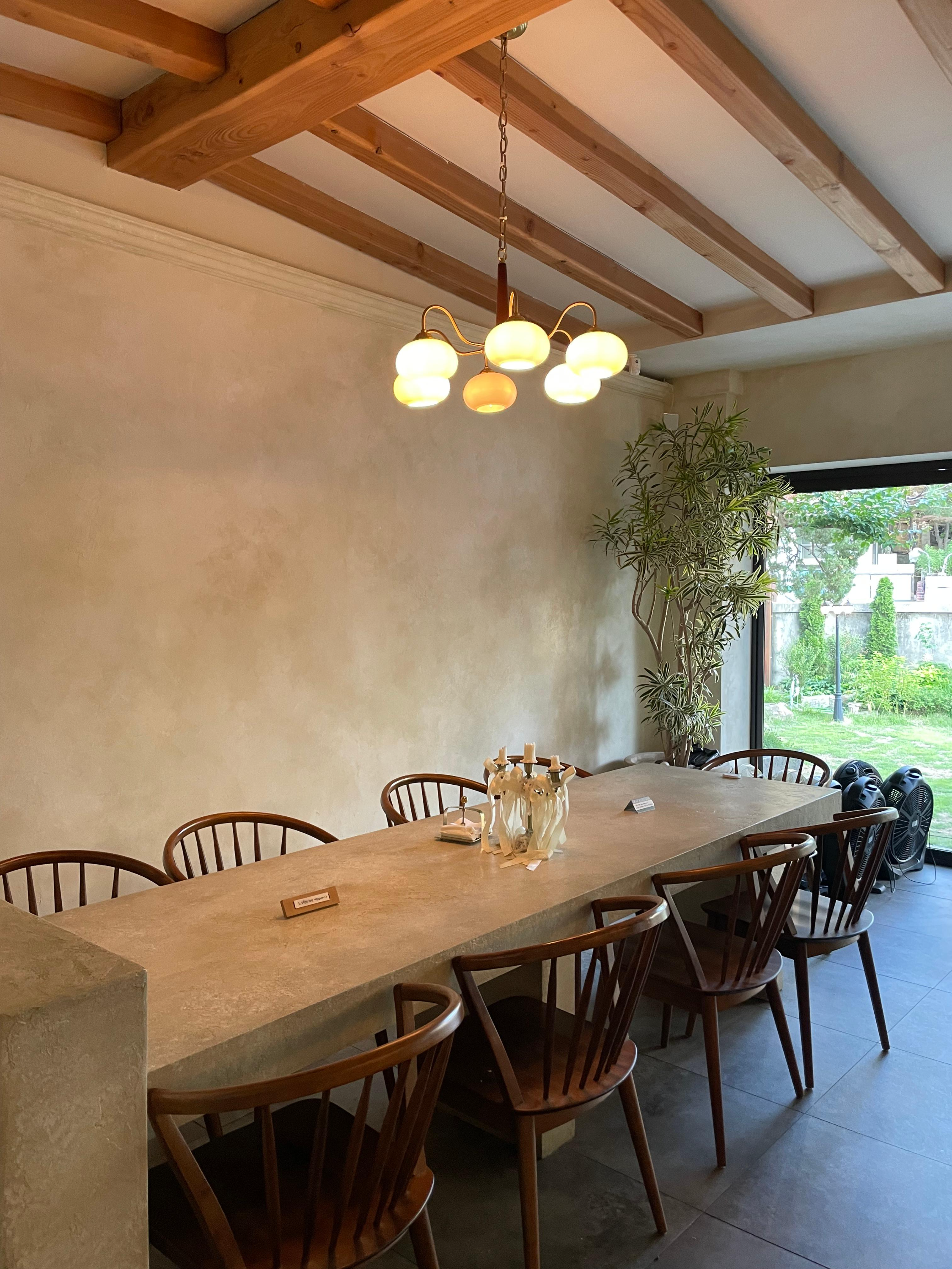 대리석상판의 테이블과 원목의자가 한층 더 고급스러운 분위기를 자아냅니다.