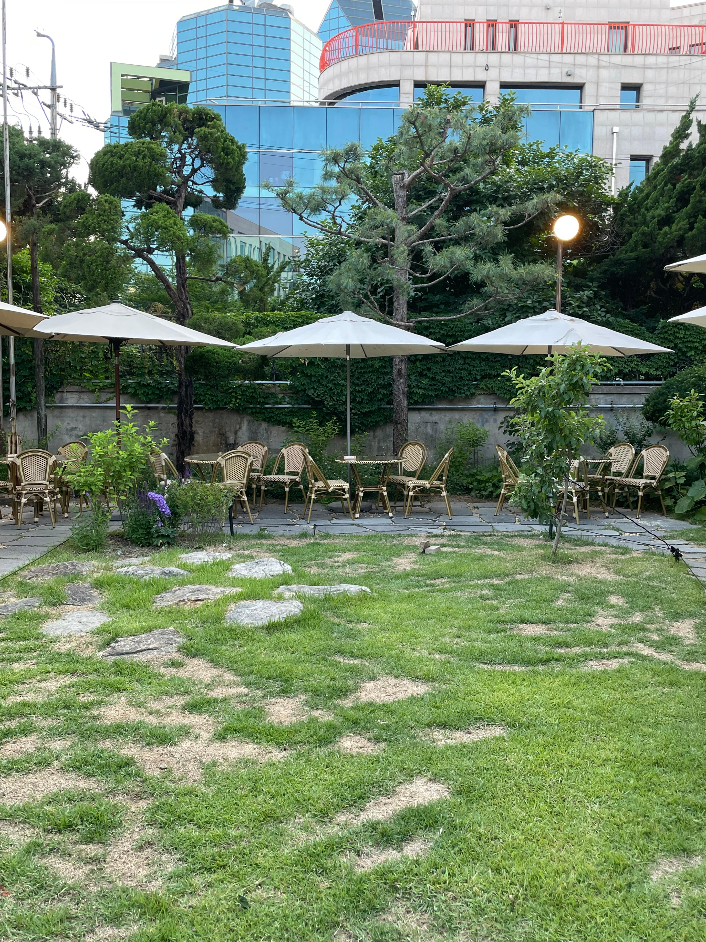 야외 정원 한 가운데는 초록초록의 풀이 자라나고 있고,