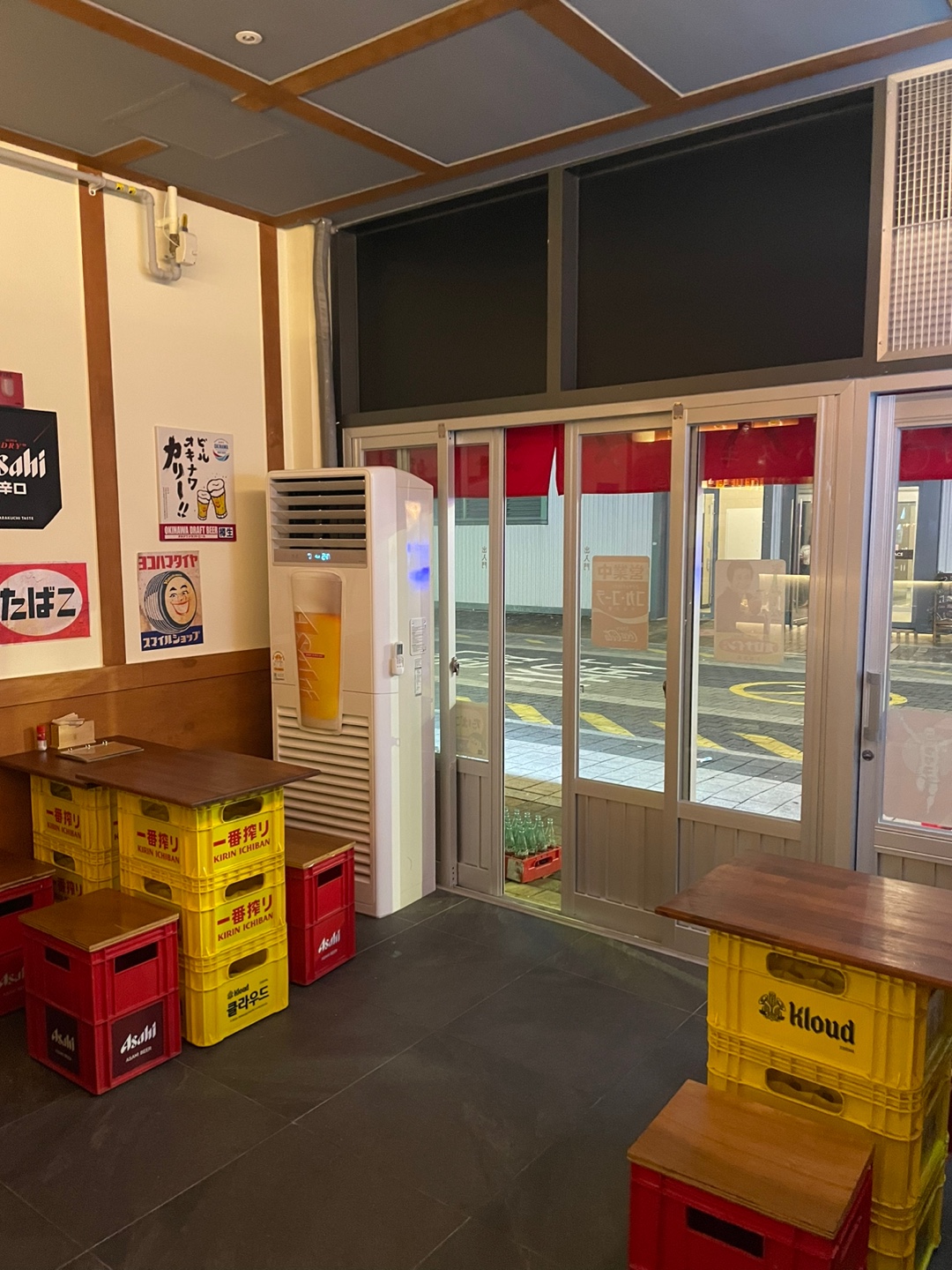 날씨가 좋은날엔 앞에 있는 맥주박스를 깔고 야장에서도 즐길 수 있다고 합니다.