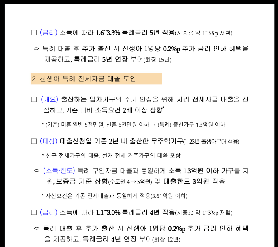 -대상자: 대출 신청일 기준 2년 내 출산한 무주택 가구 (23년 출생아부터 적용 가능)
