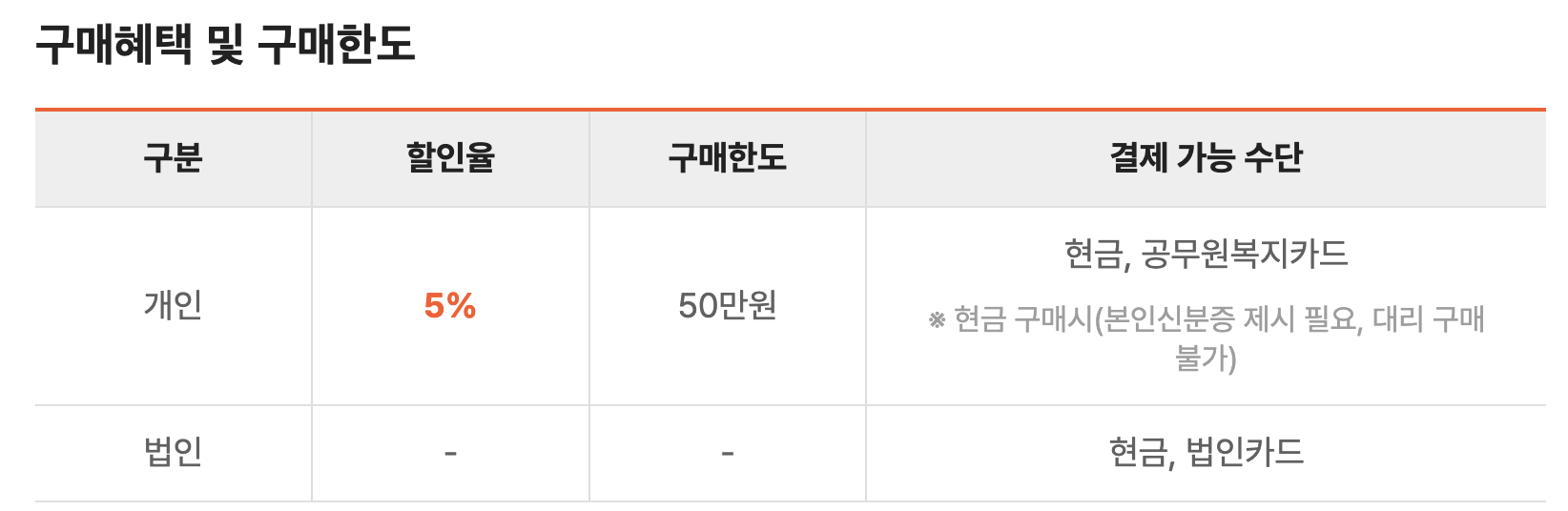할인율도 내려가고 구매한도도 기존의 1인당 150만원에서 50만원으로 대폭 축소되었네요.