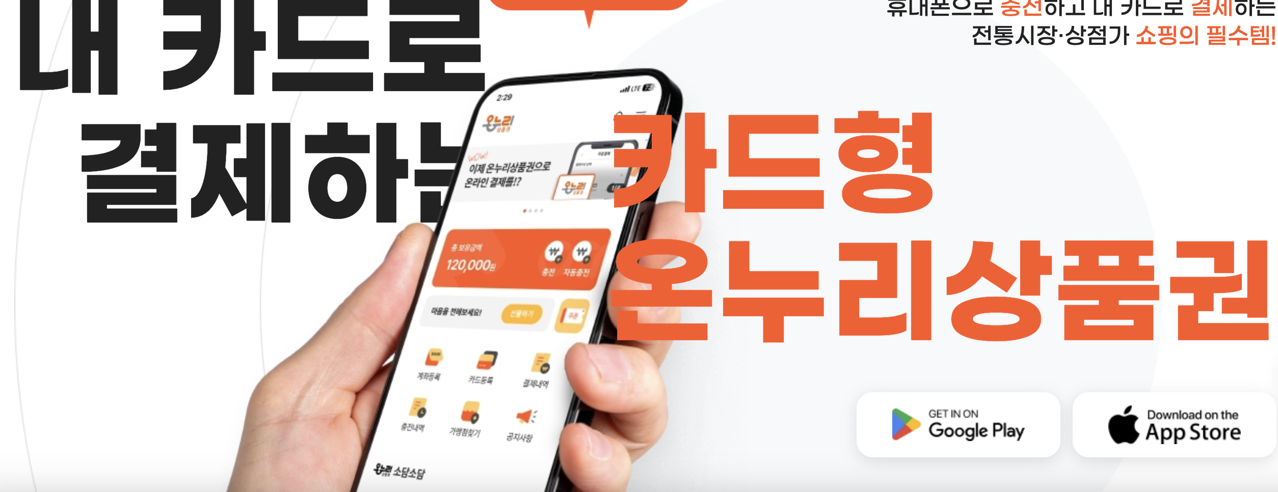 카드형 온누리 상품권을 이용하기 위해서는 온누리 상품권 APP과 발급된 카드(체크 또는 신용)가 있어야 합니다.