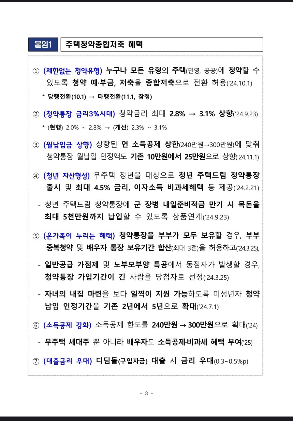 2024.09.25 국토교통부에서 주택청약저축 제도와 관련하여 여러가지 개선사항을 발표하였습니다.