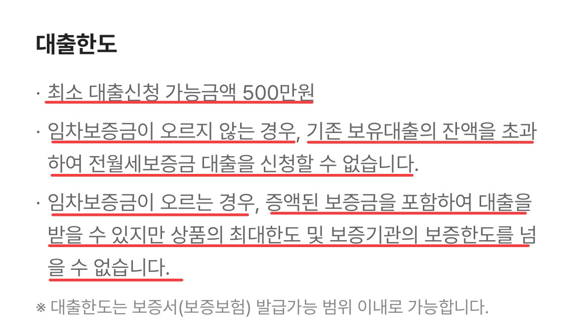 임차보증금이 오르지 않는 경우에는 대환대상 대출(기존 보유 대출)의 남은 잔액을 초과하여 대출을 신청할 수 없으며,