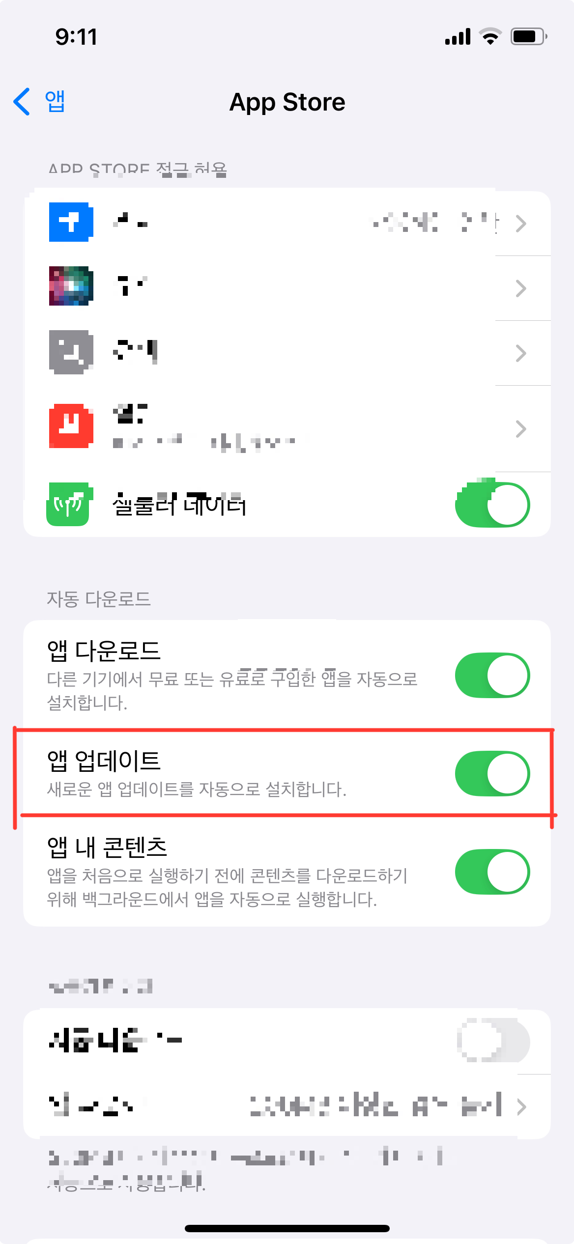아이폰의 앱 자동 업데이트 해제 방법