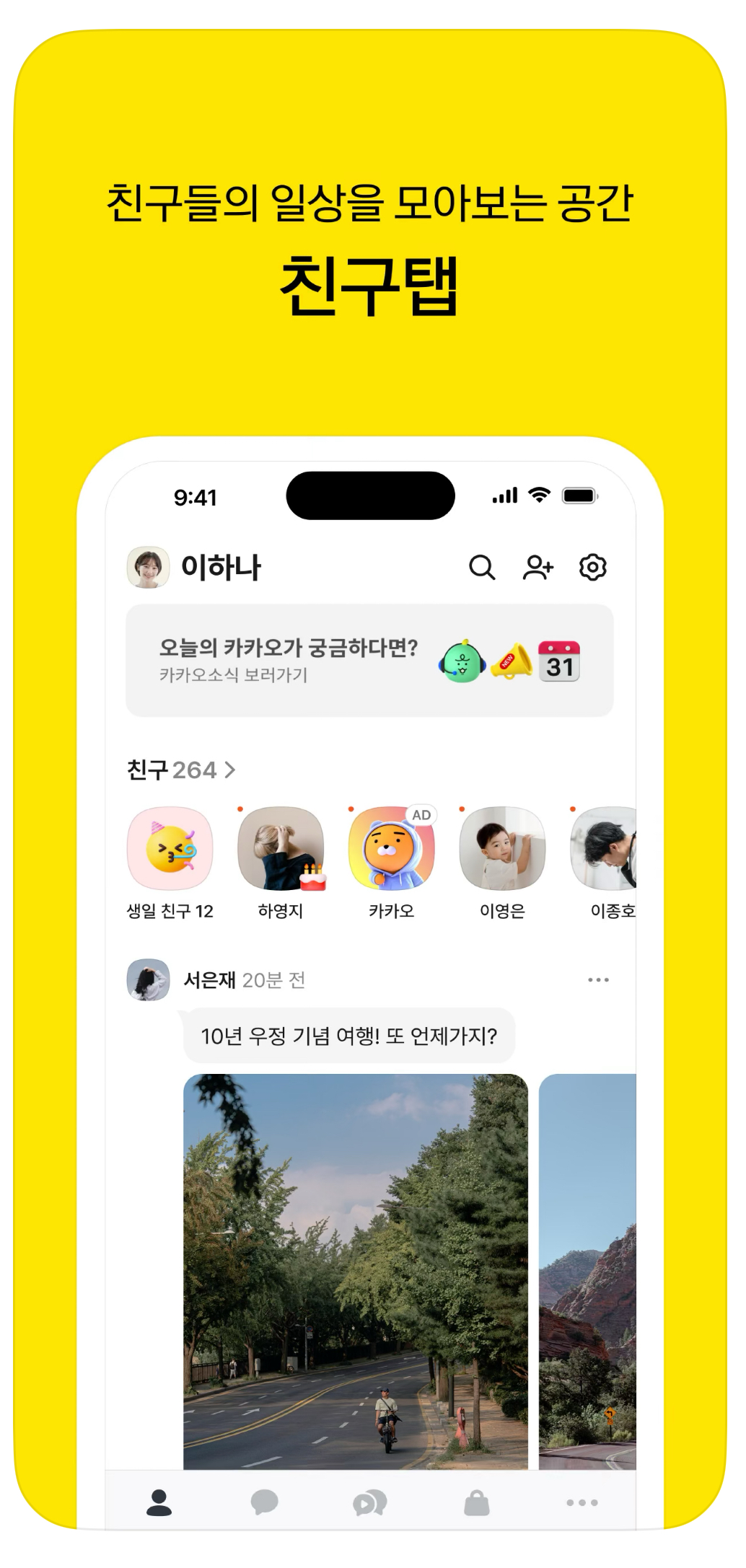 가장 눈에 띄는 변화로는 숏폼을 시청하는 메뉴가 생겼고, 친구 목록에서 프로 필사진이 매우 크게 보여지는 것, 친구의 사진이 인스타처럼 병렬식으로 보여지는 것 등이 있습니다. (가장 대표적으로 혹평이 쏟아지는 사항들)