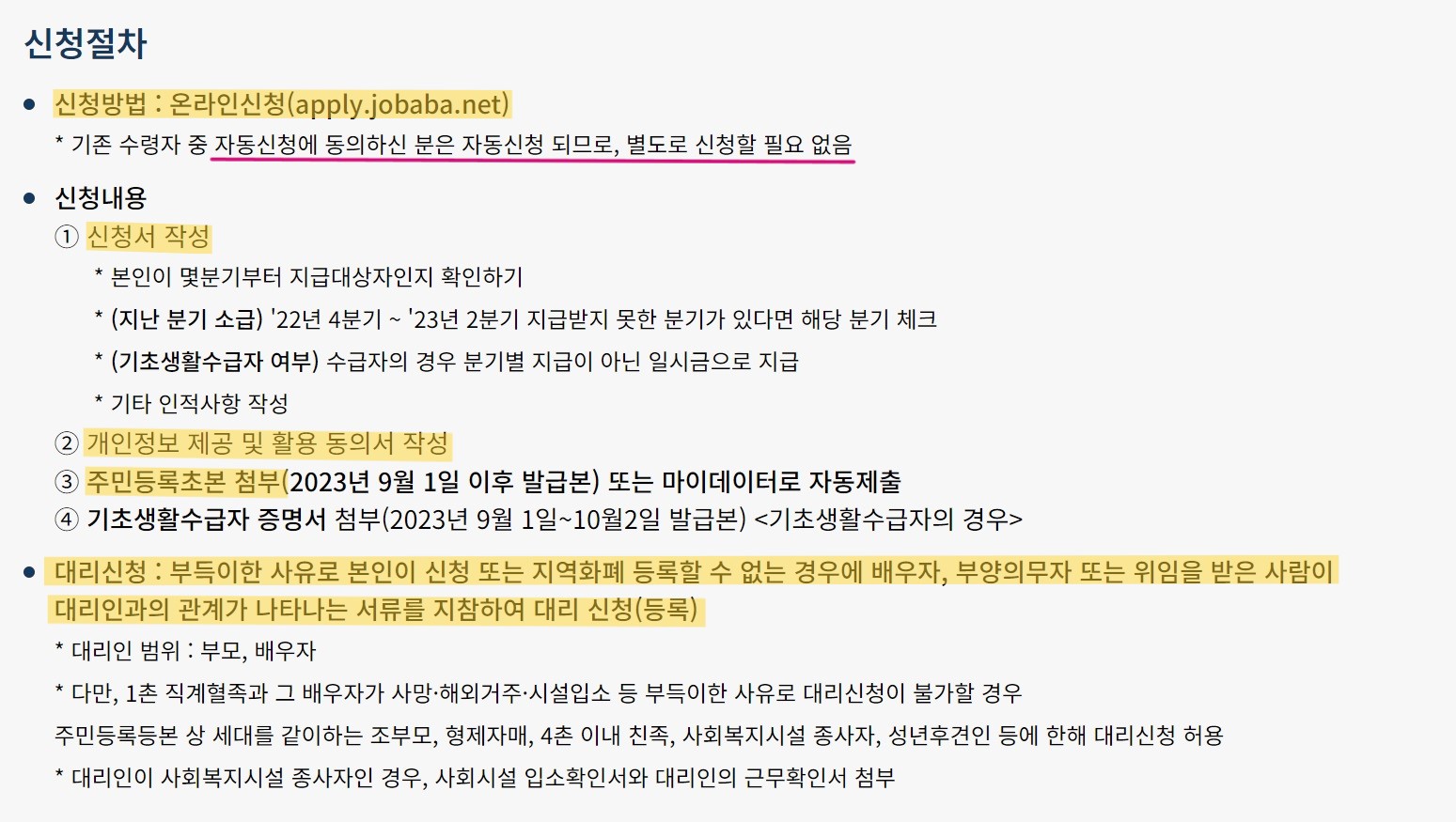 신청사이트에 접속하여 간단한 신청서 및 동의서를 작성하고 초본을 첨부하면 끝입니다. 초본의 경우 마이데이터로 자동제출이 가능하신 분들은 따로 첨부할 필요가 없으니 매우 편리하고 빠르게 신청하실 수 있습니다. 혹시 1,2분기에 해당 지원금을 신청하고 지급받으신 분들 중 '자동신청'에 동의를 하셨다면 이번 3분기 신청은 따로 하실 필요는 없습니다.