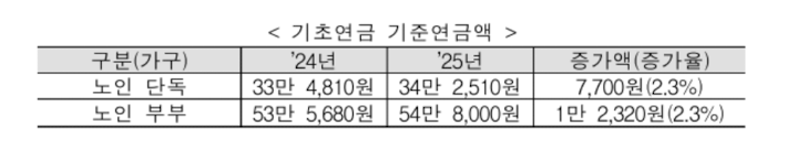 <2.3% 인상 후 변경 된 기초연금수령액>