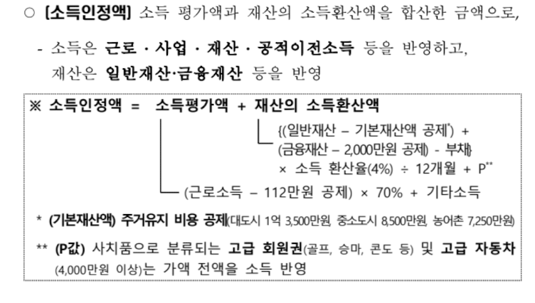위 선정기준액(소득인정액)은 단순히 월급, 사업소득만을 의미하는 것이 아니라