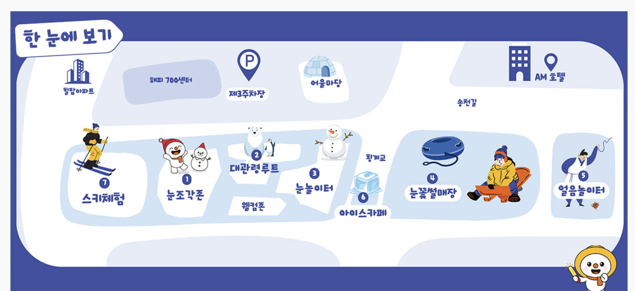 아이들이 좋아할만한 눈 놀이터, 썰매장, 얼음놀이존 등이 준비되어 있으니 아이들에게는 천국이 따로 없겠어요.