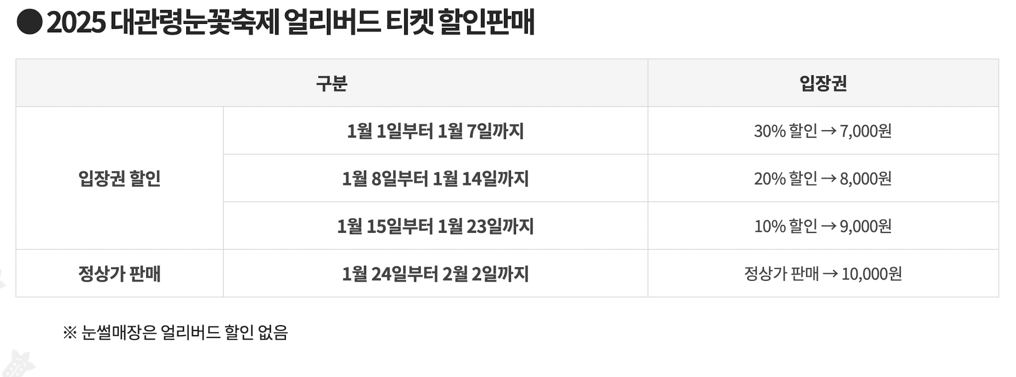 3. 대관령 눈꽃축제 예매방법 및 티켓금액