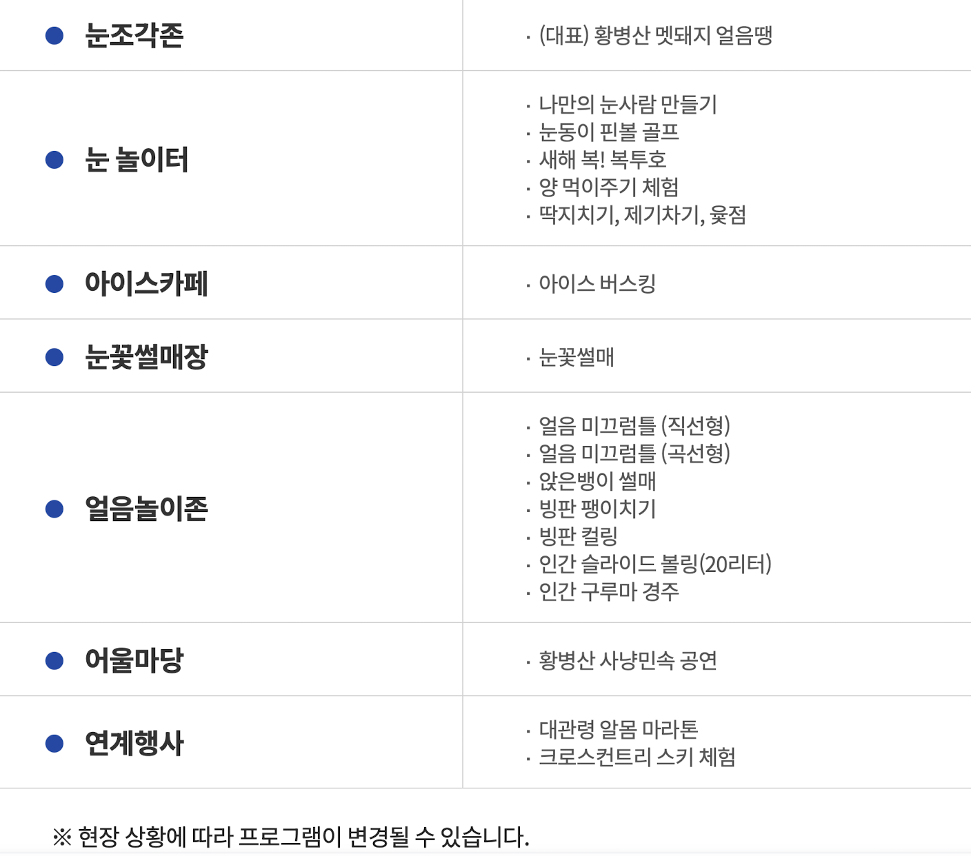 ⏹️ 대관령 눈꽃축제 행사기간: 2025.01.24 ~ 2025. 02.02
