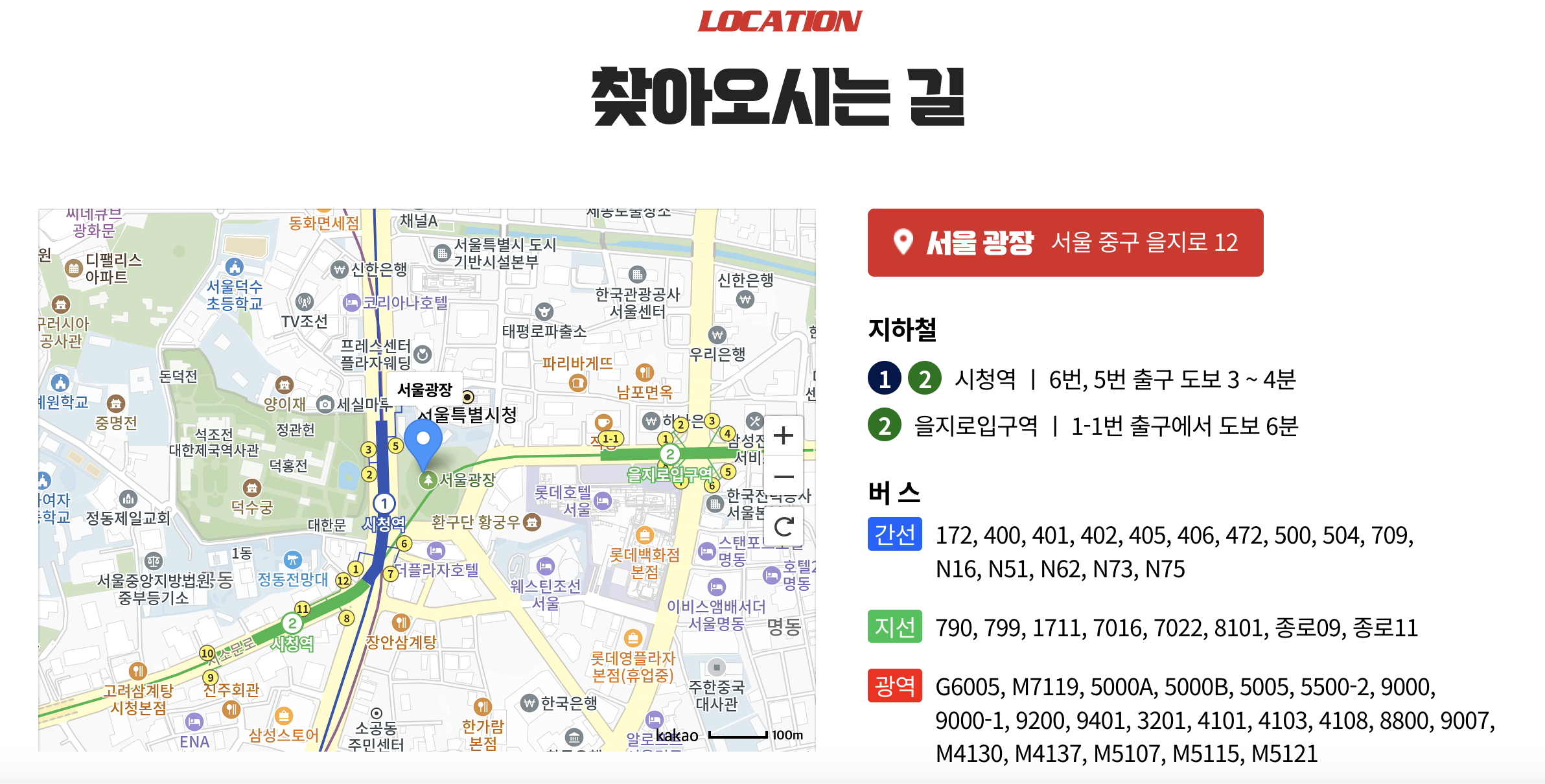 대중교통을 이용하시는게 좋습니다. 서울광장에 도착하는 많은 버스가 안내되어 있으니 참고바랍니다.