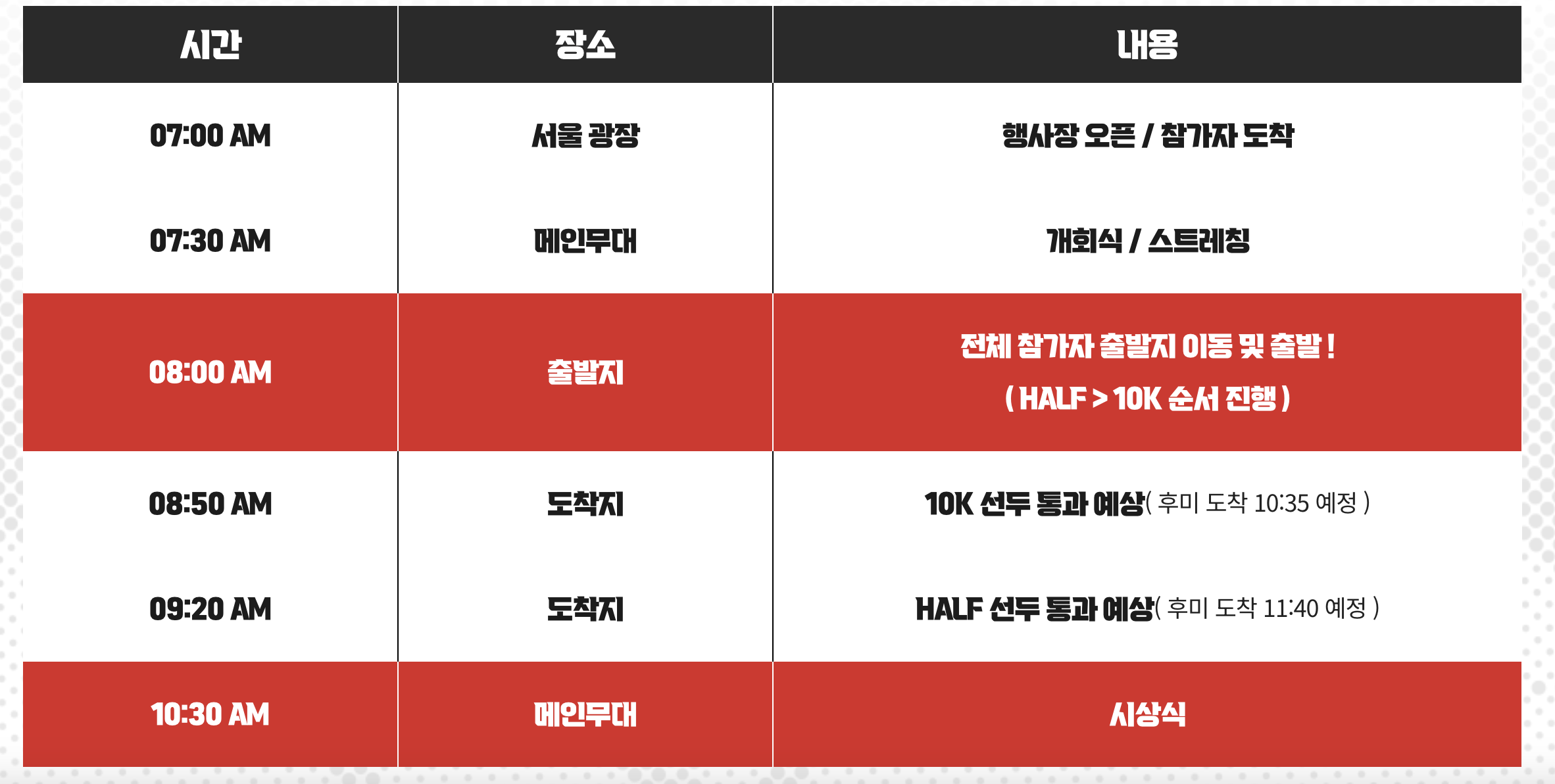 행사 당일 오전 07시까지 집결을하고 08시부터 시작이네요.