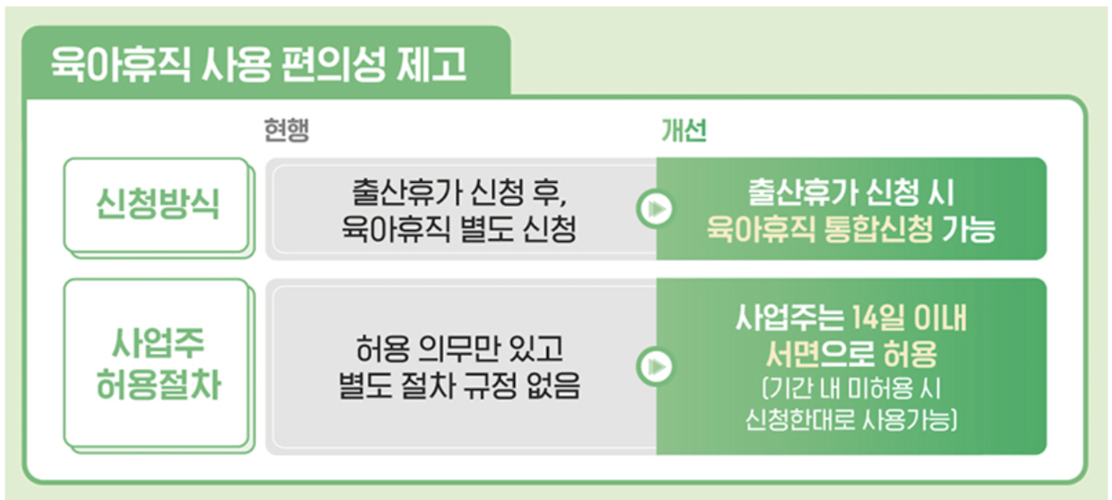 출산휴가 신청 후 육아휴직 별도 신청 -> 출산휴가 신청 시 육아휴직 통합신청 가능
